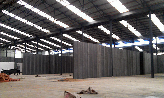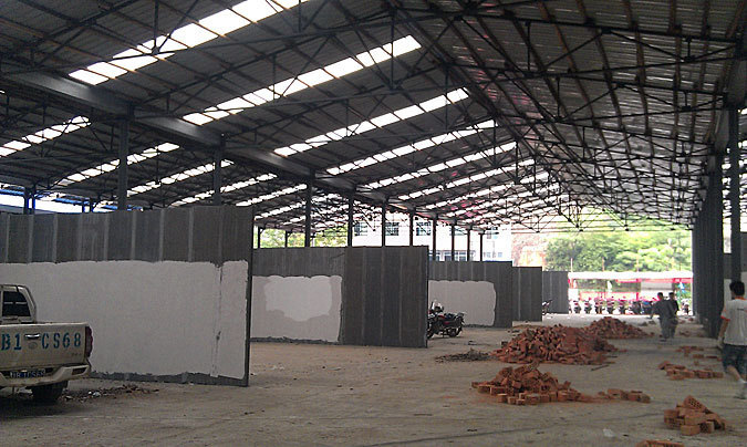 株洲輕質(zhì)隔墻板鋼結(jié)構(gòu)隔墻工程,株洲摩托車(chē)大市場(chǎng),市場(chǎng)面積約六千平米,輕質(zhì)隔墻板面積約五千平米,甲方工期要求比較緊,工期只有八天,我公司安排四組專(zhuān)業(yè)安裝人員,在工期內(nèi)圓滿(mǎn)完工。